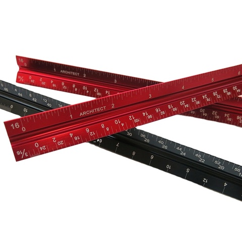 12 इंच वास्तुकला स्केल शासक महान ड्रायग उपकरण के साथ 6 स्केल ठोस धातु एल्यूमीनियम लेजर त्रिकोणीय शासक इंजीनियर के लिए लाल