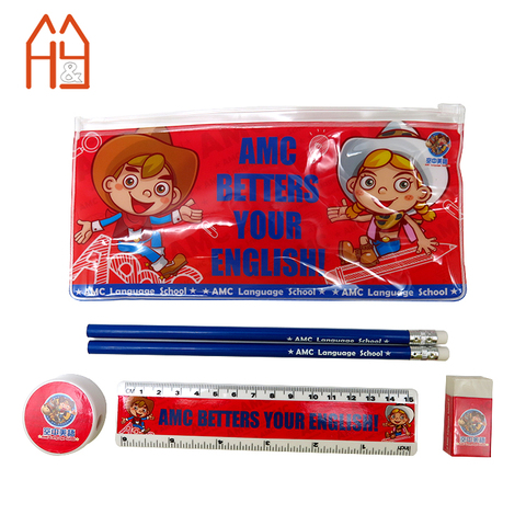 Набор из ПВХ для школы со стикером, эко-безопасный пенал и принадлежностей, оптовые скидки для реселлера